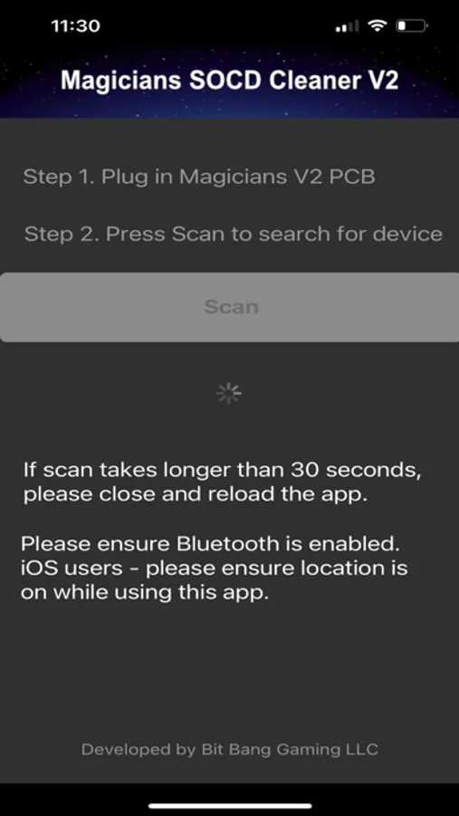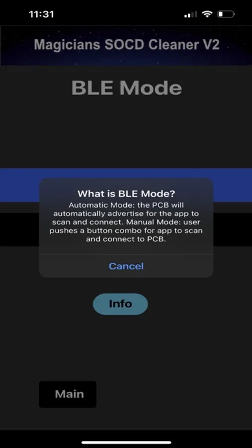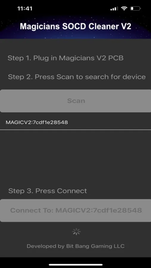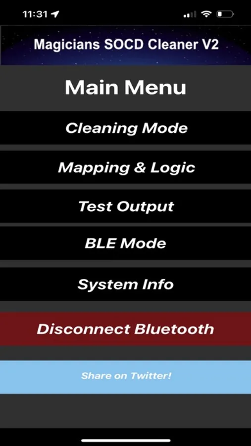 With this configuration app, you are able to connect to your Magicians SOCD Cleaner V2 via BLE, set the cleaning mode, set the BLE advertising preference, and perform live testing.