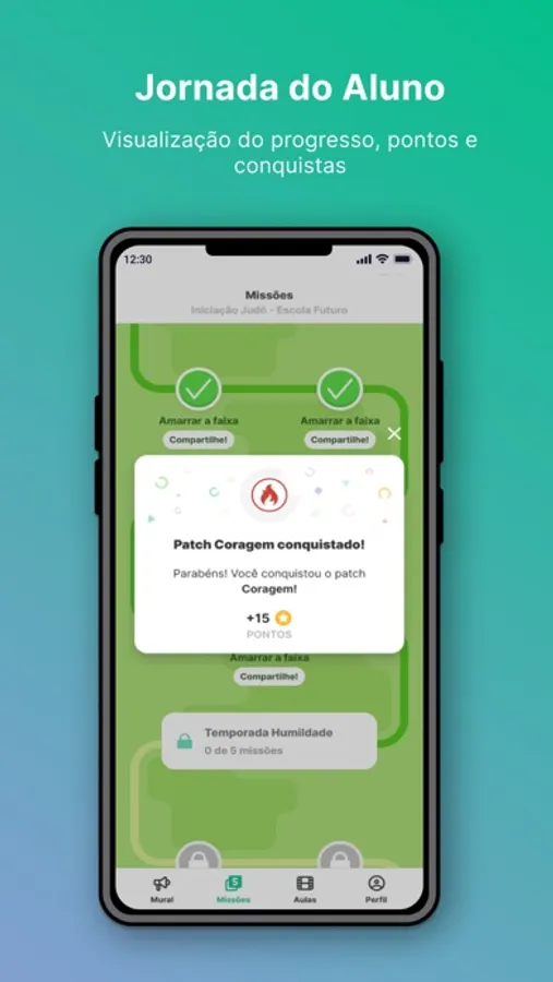 ● Missões: visualização das missões disponíveis e postagem de foto/texto/vídeo para concluir o desafio e avançar na jornada gamificada do valor