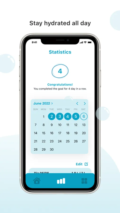 We are happy to see you here! With Waterly you will be able to monitor the amount of liquid ingested throughout the day, receive hydration tips and set a goal to drink more water.