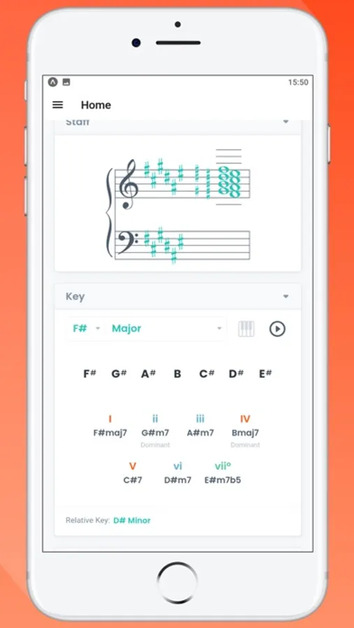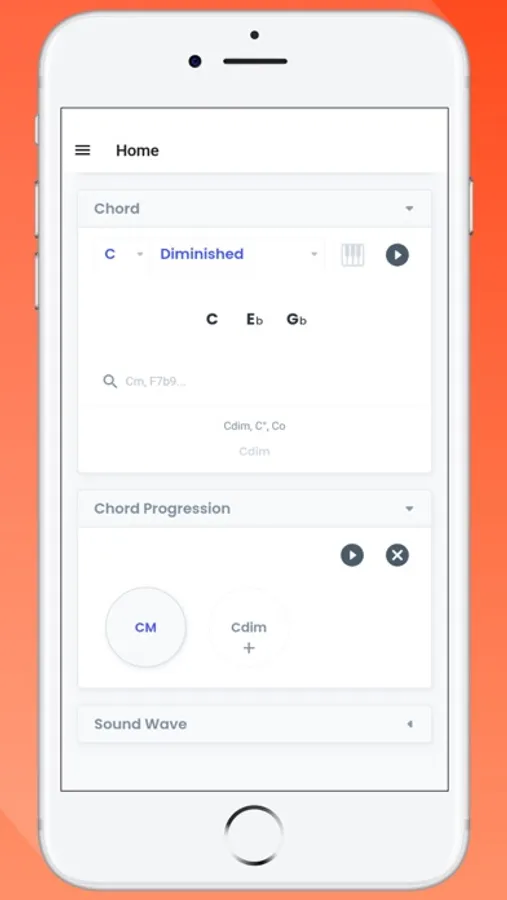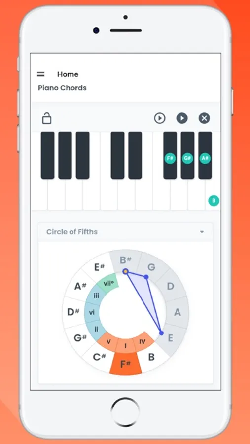 The app helps you to experiment with different chord progressions using relative or common chords and other music theory related chords.
