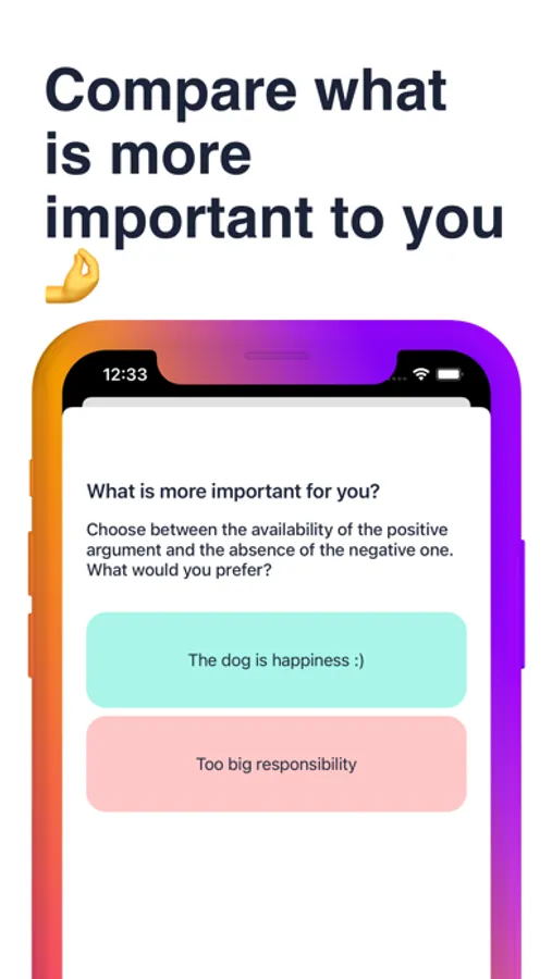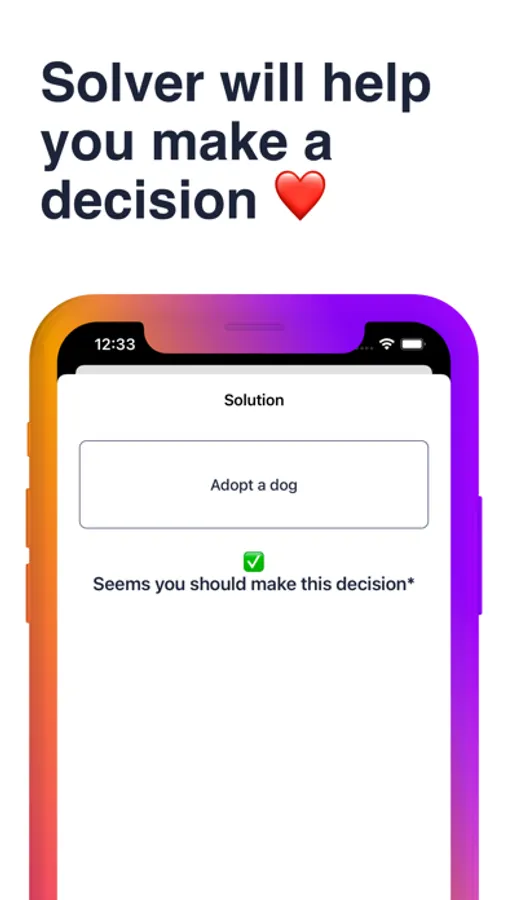 Solver is a your decision assistant! The only you will do is specifying arguments in favor and arguments against — the app will do the rest