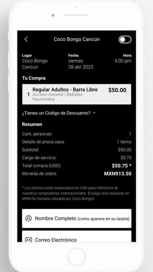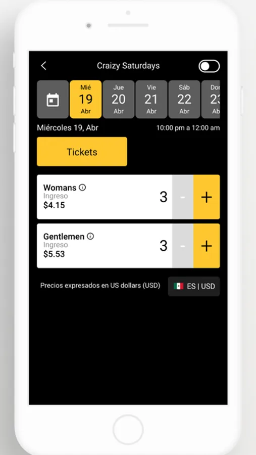 Desde la aplicación podrás ofrecer, seleccionar y cobrar los adicionales habilitados para cada uno de los eventos y categorías de tickets.