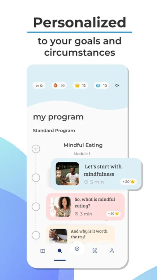 Most diet and nutrition apps are focused on weight loss only. If this is your goal, Nutrition Coach helps you lose weight with the latest scientifically proven approaches. We’ll teach you the psychology of weight loss, mindful eating, joyful movement, the science of metabolism, emotional health, decision making, self-care, and much more.