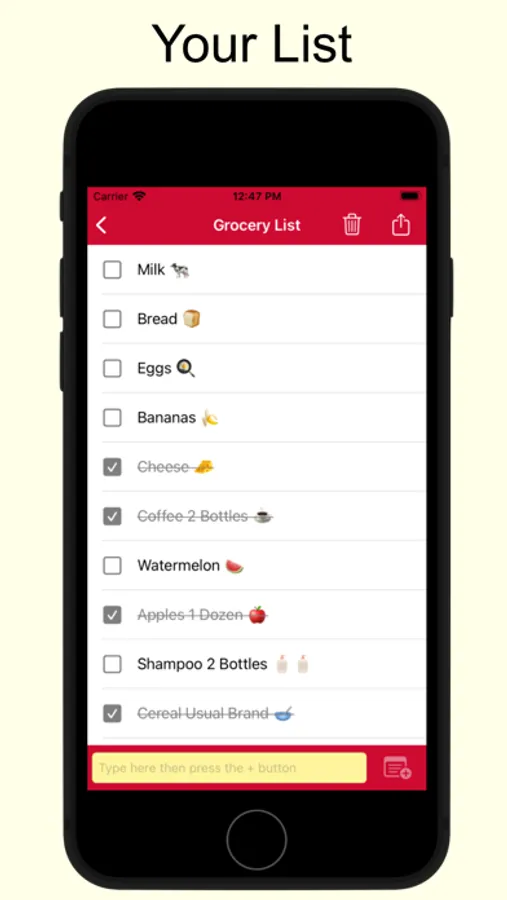 * Lists are reusable. So for example, if you make a grocery list to shop for groceries at the local store, it can be reused over and over again. There is no need to keep making a new one each time. Just make it once, and after that just check and uncheck the items. It will be uniquely yours and will always have the items you buy.