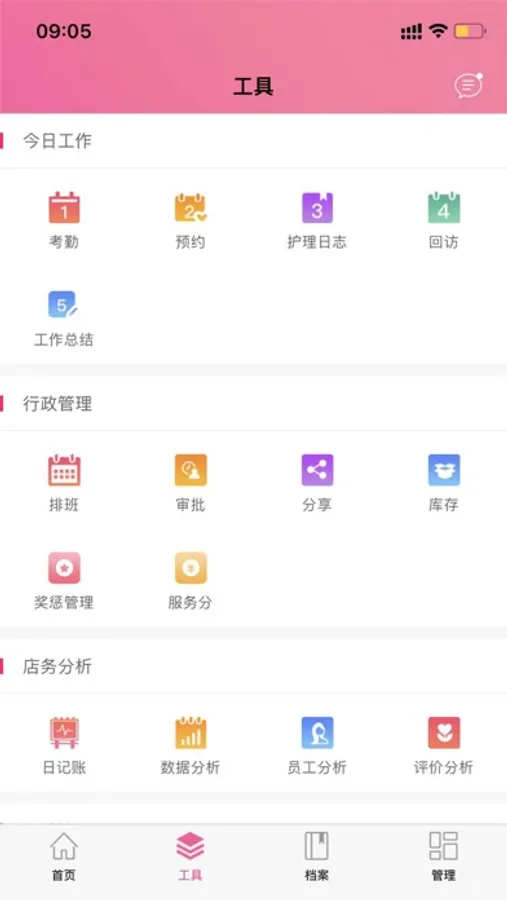 为经营者及员工提供多种店务、工作、考勤等工具模块