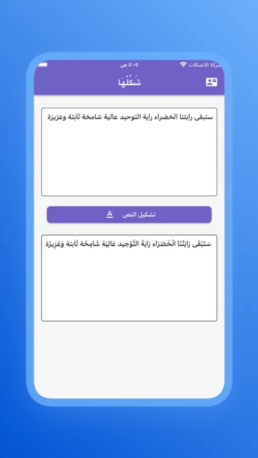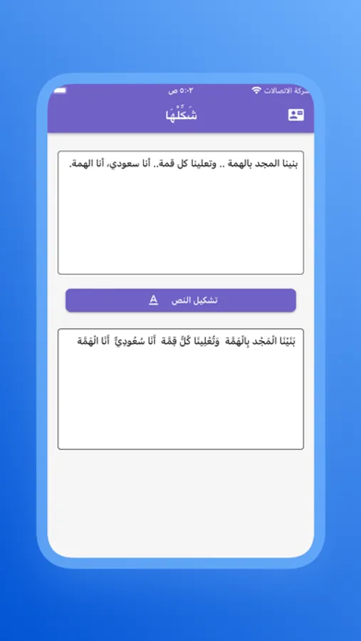 يعمل تطبيق شَكِّلْهَا على تشكيل حروف النصوص العربية دون قيود لعدد الأحرف أو حجم النص.