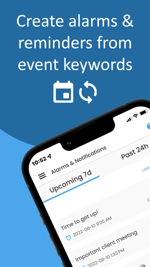 We’ll automatically detect specific keywords (“tags”) you write in your calendar events, generating alarms or notifications that sync to your Power Tags Alarm iOS mobile app and trigger them at the right times.