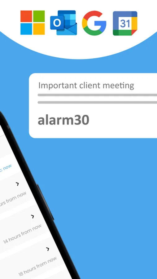 Instead, alarms or reminders are auto created by typing simple keywords (“tags”) such as alarm30 and notify2pm into your Microsoft or Google calendar events.