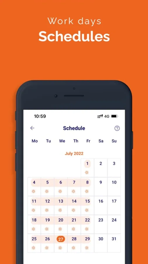 Features in the app: Schedules, Timesheets, Download Timesheets, Salary management, Notifications, Requests management, Send feedback.