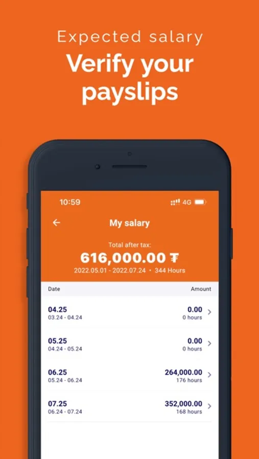 The primary purpose of the mobile application is to allow employees to review and confirm their timesheets on a daily basis. As a result timesheet conflict between what employees remember and the end of the month confirmation from Oyu Tolgoi supervisors will be reduced. Furthermore, CAML will have access to up-to-date timesheet information coming from the employees and review it on the management portal (hr.caml.mn).