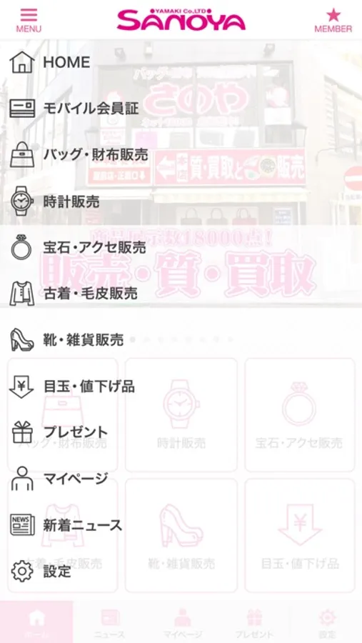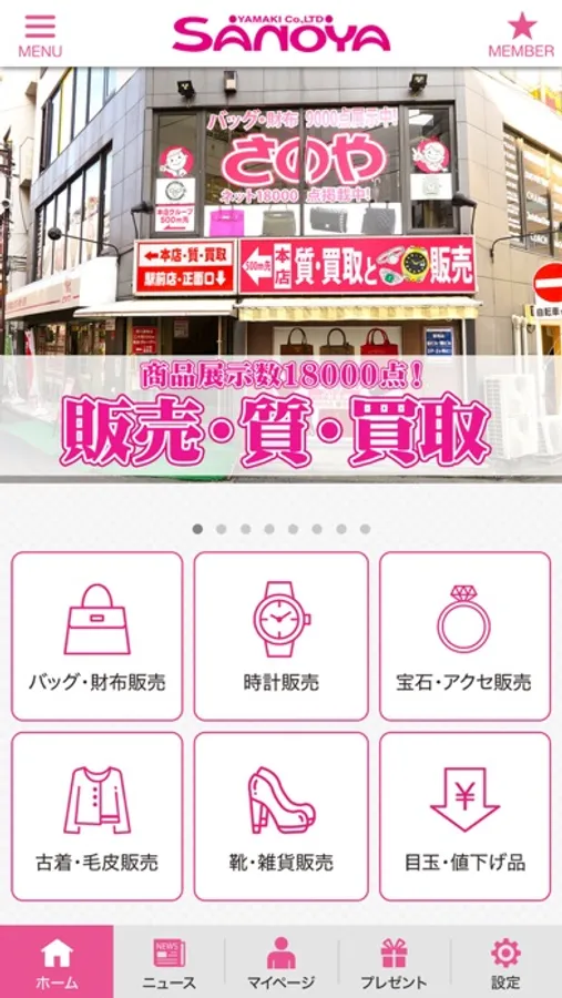 最新情報の受け取りや、お手軽に各ジャンルの販売ページの閲覧、質・買取サイトへのアクセス、金・プラチナの買い取り相場などが確認できます!