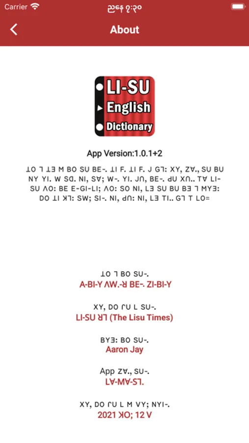 The first Lisu-English Dictionary application, proudly produced by The Lisu Times, in order to preserve and promote the use of the Lisu language, one of the languages of Tibeto-Burman.