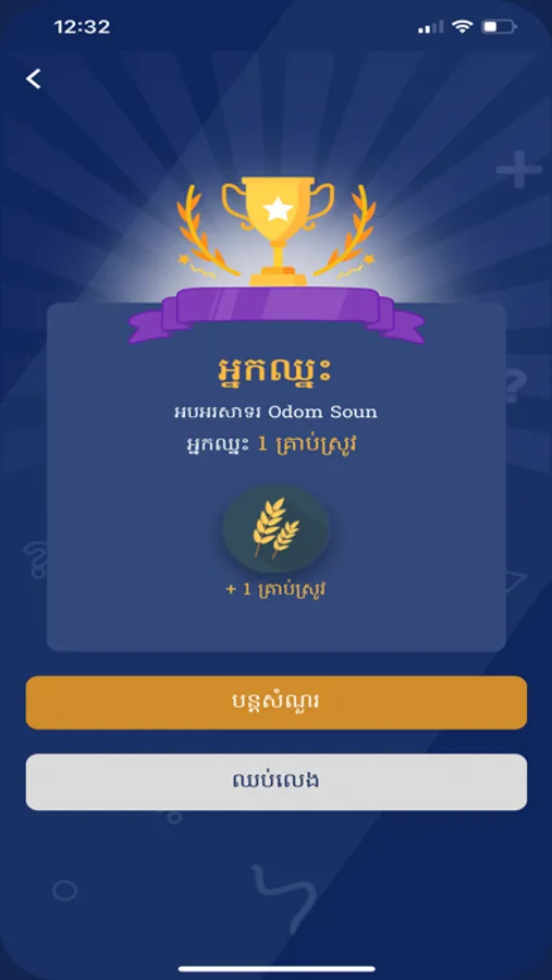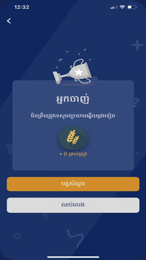 Trivial app for donating rice to Cambodians. This app is for Cambodians to improve their knowledge by answering the question. For each question they answer correctly they will earn points that will convert to rice.