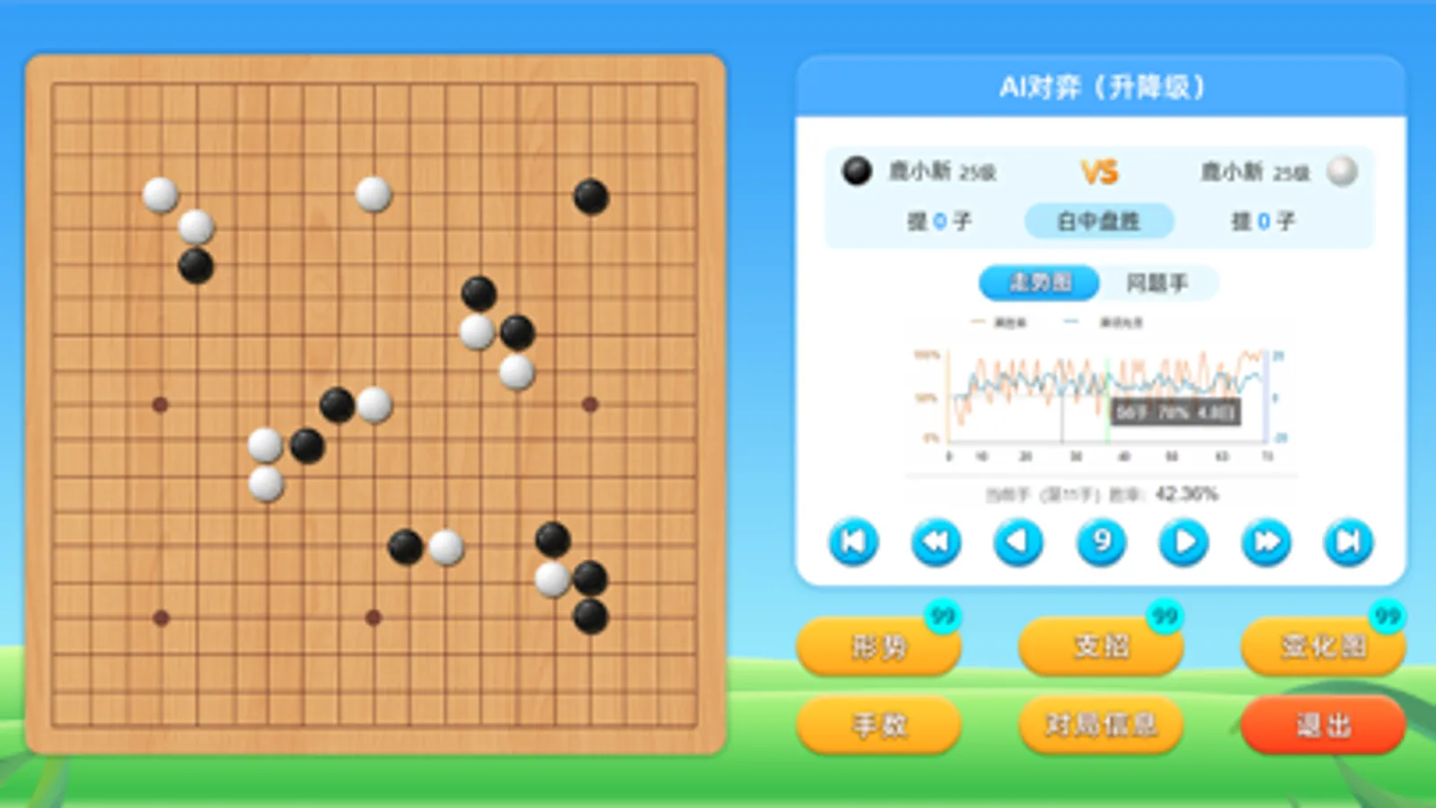 围棋实训APP可以作为围棋AI考级的模拟测试软件,用户通过围棋实训APP的训练后,再参加围棋协会AI等级考试,将有更加高的几率通过。围棋实训还有AI对弈,AI训练,AI残局训练,围棋练习册电子书,25级-9D的互动习题,错题本训练,定制个性化课件,方便棋校以及学生高效提高水平。