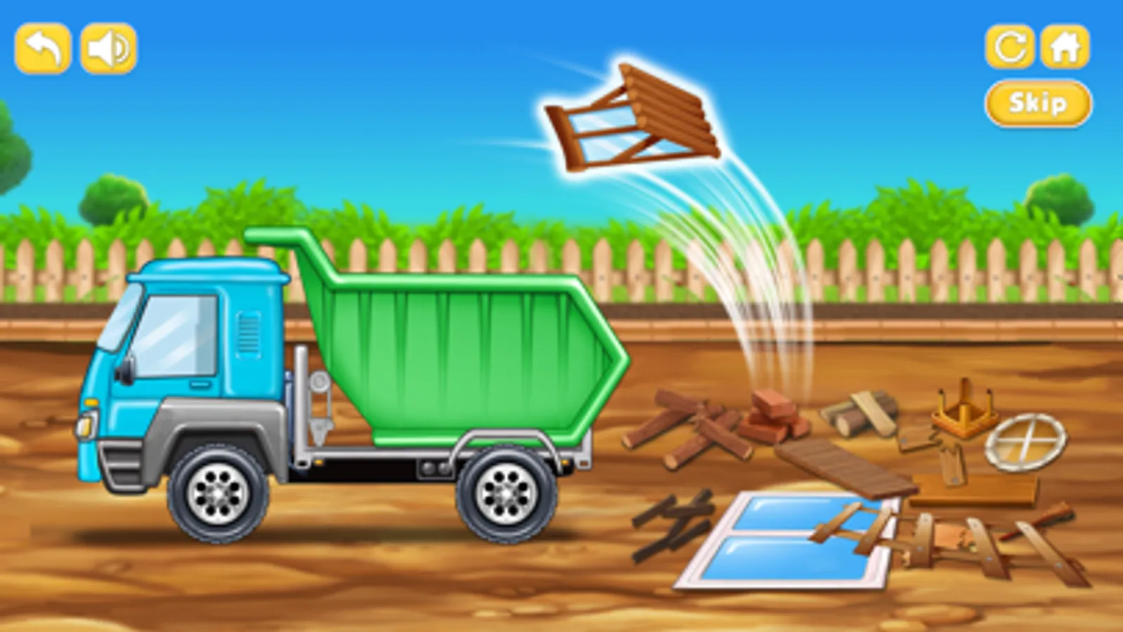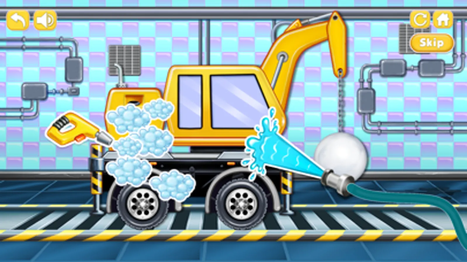 Your truck got dirty after hours of building the house? No problem! Go to car wash, soap it with bubbles in house construction games, roll it through with soft brushes while learning trucks and build house, clean it with water and dry it off so your car will shine clean in a car games for free building a house!