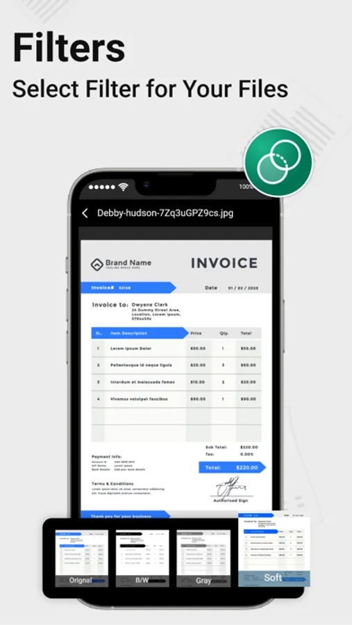 The doc scanner can quickly scan your documents in high quality. The auto detection of edges and rotation of the scan document are its prominent features. It also offers filters like greyscale, normal, original and soft.