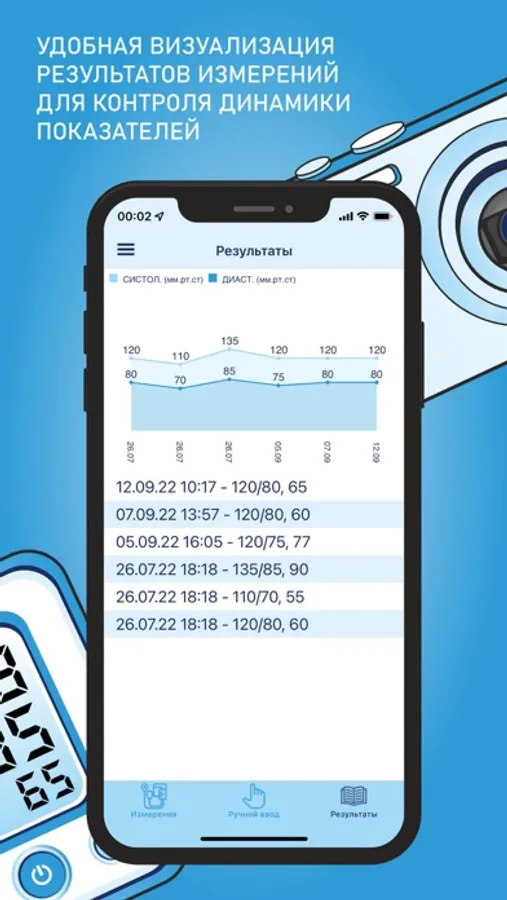 Позволяет самостоятельно отслеживать динамику изменения жизненных показателей на удобном графике для своевременного реагирования на изменения показателей, требующие корректировки назначений.