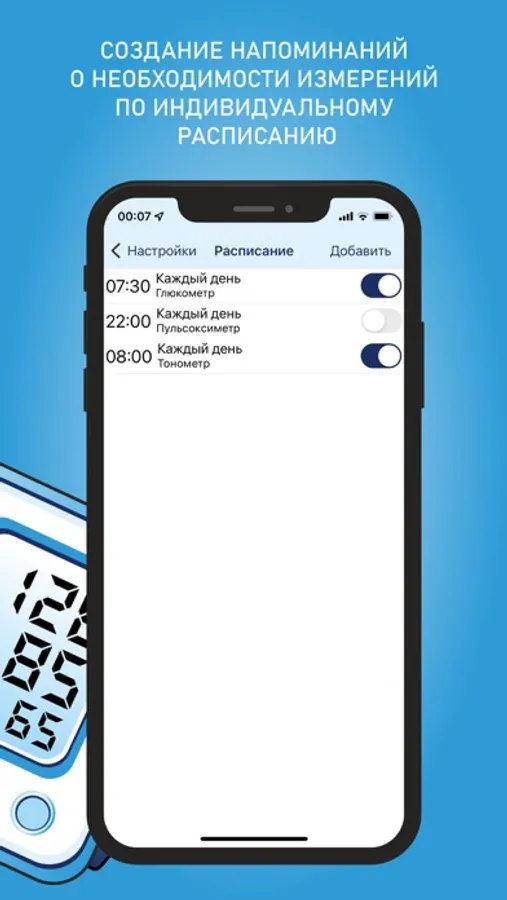 Кроме измерений, присутствует возможность добавлять текстовые комментарии и устанавливать напоминания по необходимому индивидуальному графику.