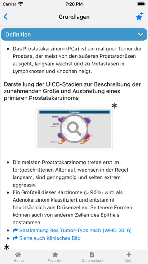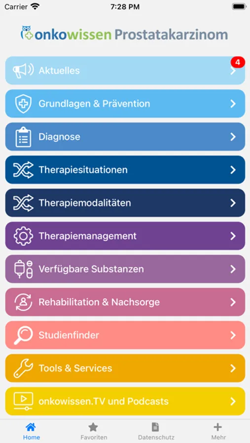 Die App enthält außerdem einen Newsfeed mit Links zu neuen Daten und aktuellen Themen rund um das Prostatakarzinom.