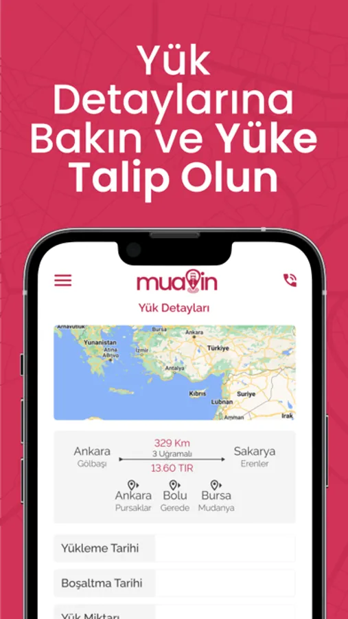 Muavin ile, nakliye işlerinizi kolayca halledebilirsiniz. Sistem, yük verenlerin ihtiyaçlarını ve taşıyıcıların kapasitesini harmanlar. Böylece yük verenler, taşıma işlerini hızlıca ve güvenilir bir şekilde yürütmek için en uygun taşıyıcıları bulabilirler. Taşıyıcılar da boşta kalan kapasitelerini dolu hale getirerek, daha fazla iş yapma fırsatı bulabilirler.