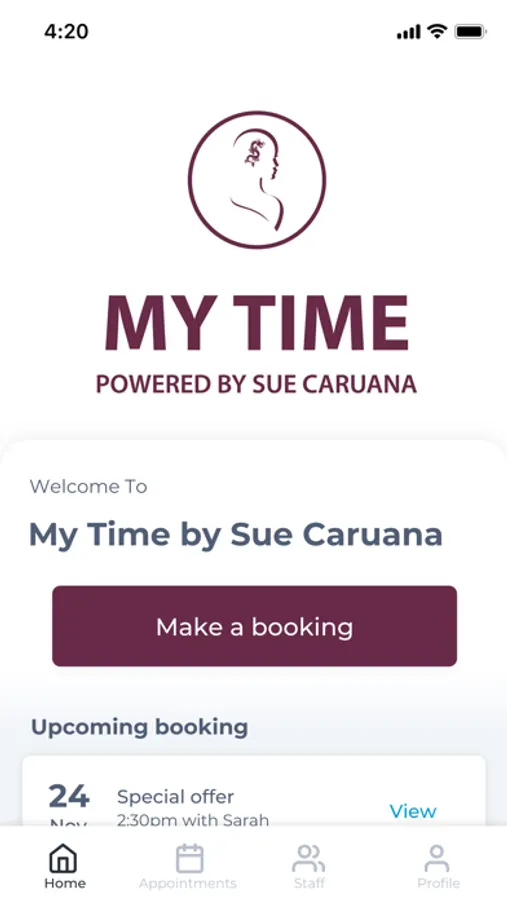 The My Time by Sue Caruana app makes booking your appointments and managing your loyalty points even easier. You're just a few taps away from feeling good and looking great!