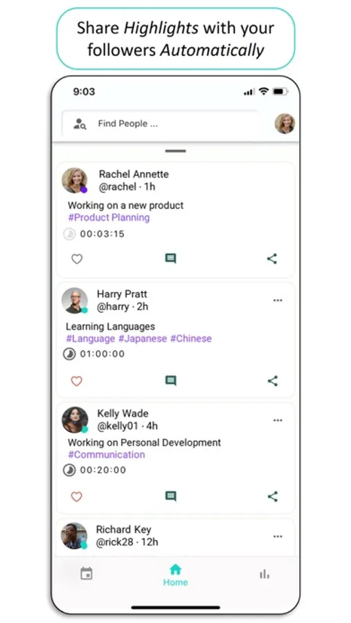 - Co-work with others by sharing work highlights