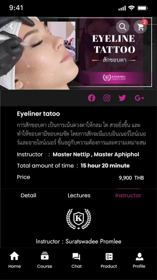 สถาบันสอนสักคิ้ว 1 เดียวในไทย ที่ได้รับการรับรองจาก "สถาบัน BIOTEK" ประเทศอิตาลี ให้เป็นศูนย์กลางการอบรมหลักสูตร "เรียนสักคิ้วนานาชาติ" ซึ่งเป็นสถาบันสอนที่ใหญ่ที่สุด และทั่วโลกให้การยอมรับ เราได้รวบรวมหลักสูตร การเรียนสักคิ้ว จากต่างประเทศไว้ในที่เดียวเพื่อรองรับนักเรียนจากทั่วโลก