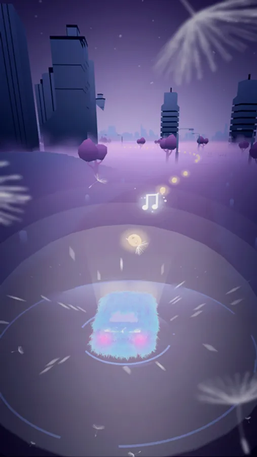 You have to grab the musical notes because they're your fuel and you want to keep listening to the relaxing song. If you crash into obstacles, you'll lose fuel. So be careful with your fluffy fur car!
