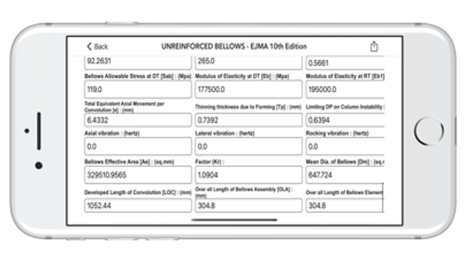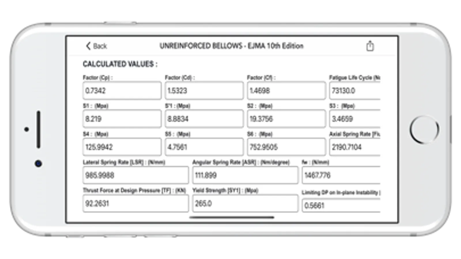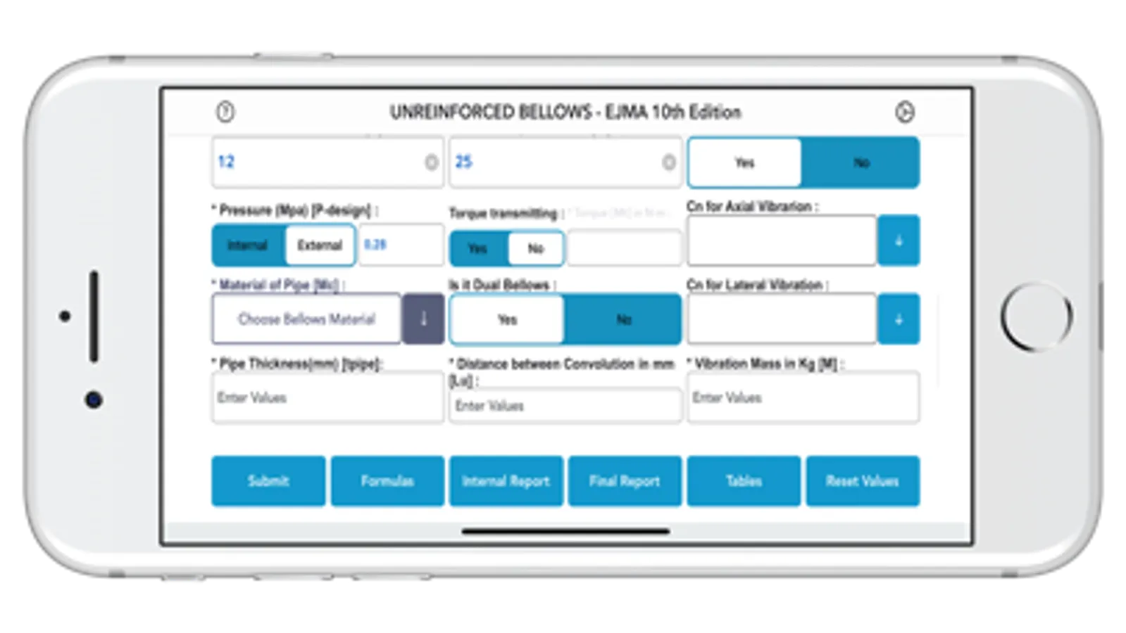 Calculations include Single, Dual Bellows with over a long list of Materials.