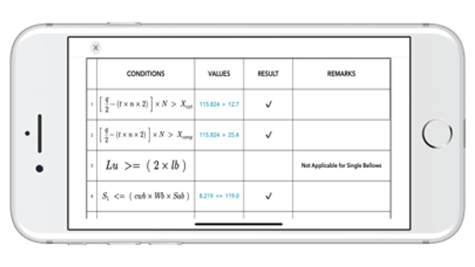 App checks the design parameters with all set of Conditions to be met as per EJMA Standard.