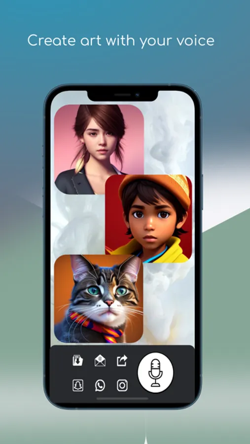 VoiceArt generates any type of image based on what you tell it with your voice. It creates artistic impressions with the AI engine. The engine uses images it finds online about the topics you tell it and merges them in an artistic manner.