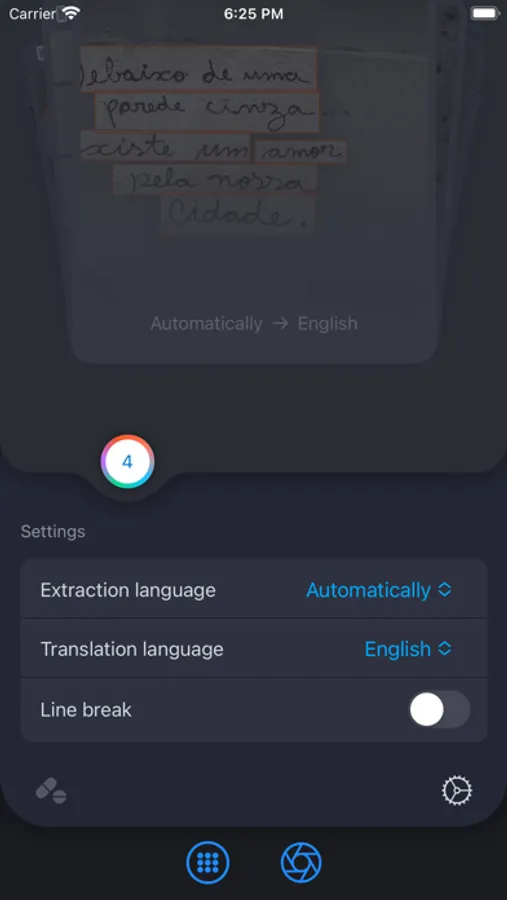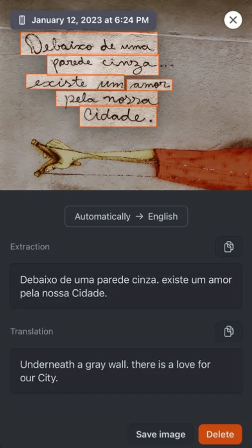 • Select or take a picture of the image you want to extract and translate text from.