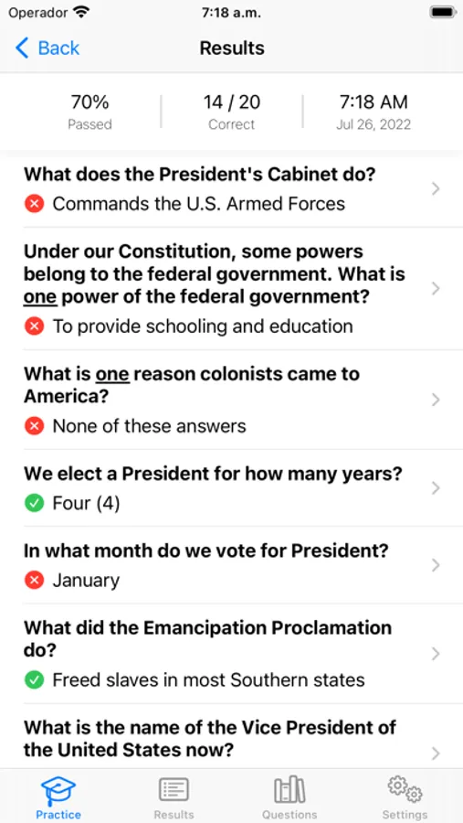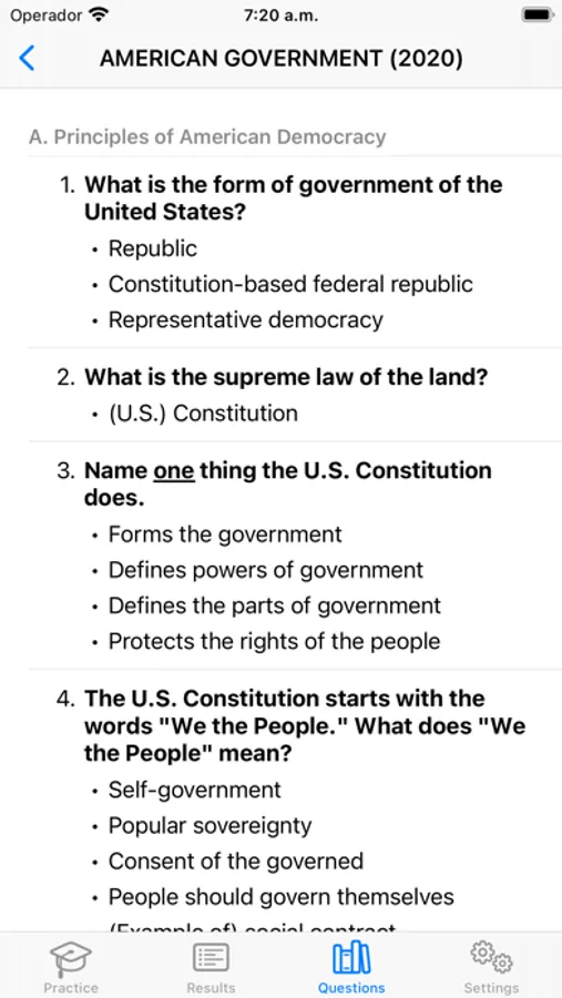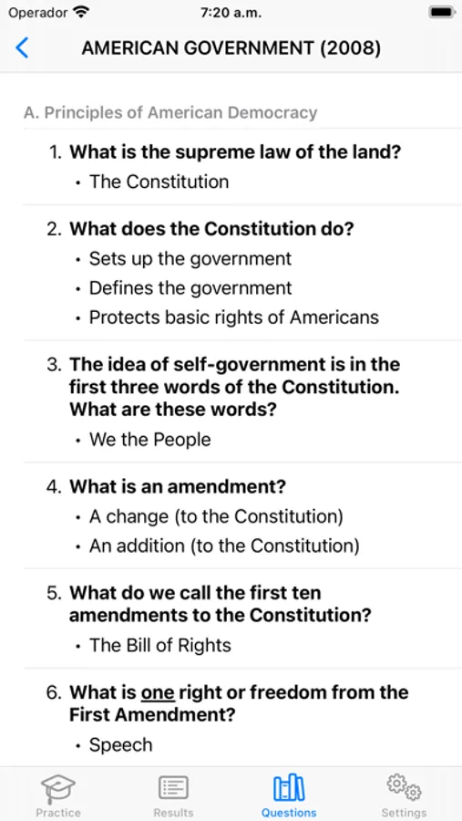 Use this app to help you study for the citizenship test with the practice test and all of the questions available to study and memorize.