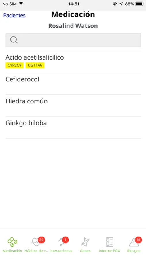 historia farmacogenética del paciente. Reporta los fenotipos de los principios activos y de los