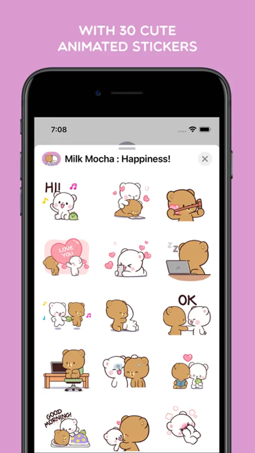 Animated Milk Mocha Bear Sticker Pack is back! Now with 30 Happiness theme stickers, in hope to bring you and your loved ones more happiness through chat.
