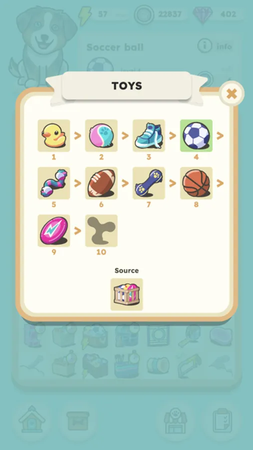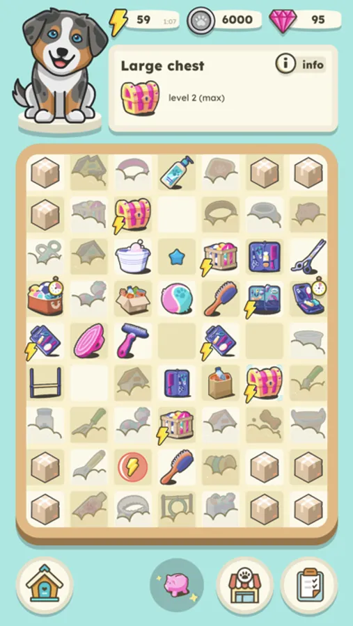 Merge toys, dog houses, pillows, medicine, grooming tools, bathing supplies, snacks, food, training equipment, to keep your puppy happy and balanced. It's like Tamagotchi, except so much better. Your puppy needs different combinations of items at different times and you mix and merge them together on a beautiful board.