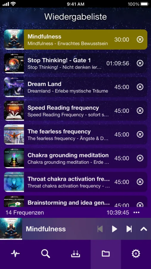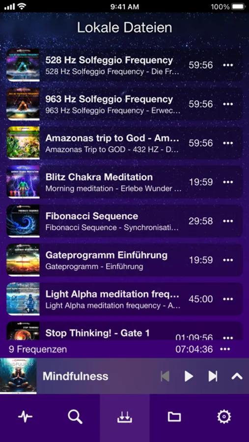 The app contains over a hundred different frequencies, which can vary from short to long playback time. In addition to some meditations on various topics, the app also includes our flagship, the Gate Program.