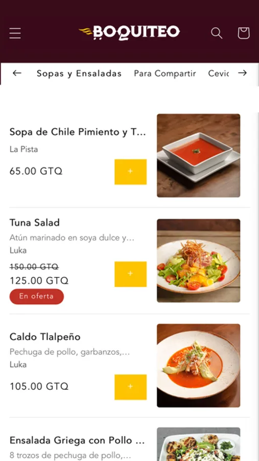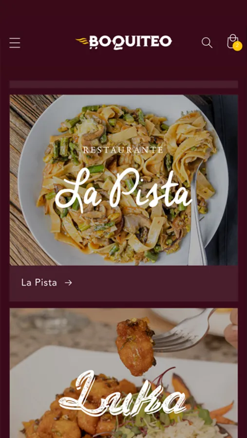 Encuentra los siguientes restaurantes: La Pista, Luka, Rick's Burgers, Yatta Sushi, Hops, Alibaba, Terra Nostra y Kombu.