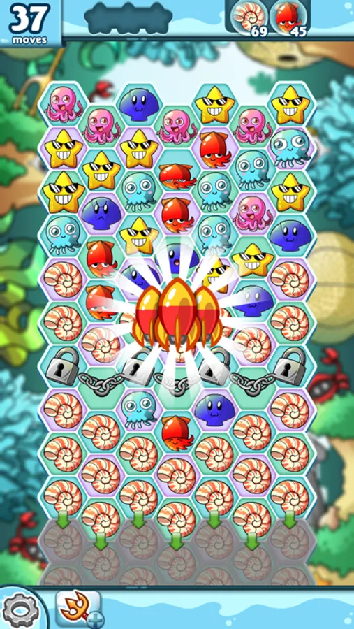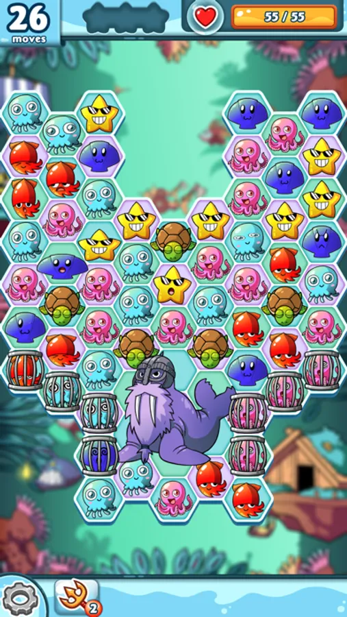 Figure out how to eliminate coral, wake sleeping turtles, and free fishies from nets. If you get stuck, boosters like tridents, fishhooks, magic potions, and cross rockets can help you catch the fishies you need before you run out of moves. Go fishing for awesome powerups and jewels!