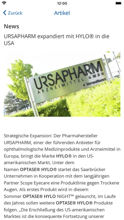 URSA.connect ist die Kommunikations-App von URSAPHARM. Seit mehr als 40 Jahren steht der Name URSAPHARM für den konsequenten Transfer innovativer pharmazeutischer Konzepte in erfolgreiche Arzneimittel und Medizinprodukte. Heute ist URSAPHARM ein international operierendes mittelständisches Unternehmen und zählt aufgrund seines breiten Produktspektrums auf dem Gebiet der Ophthalmologie in Deutschland zu den Marktführern.