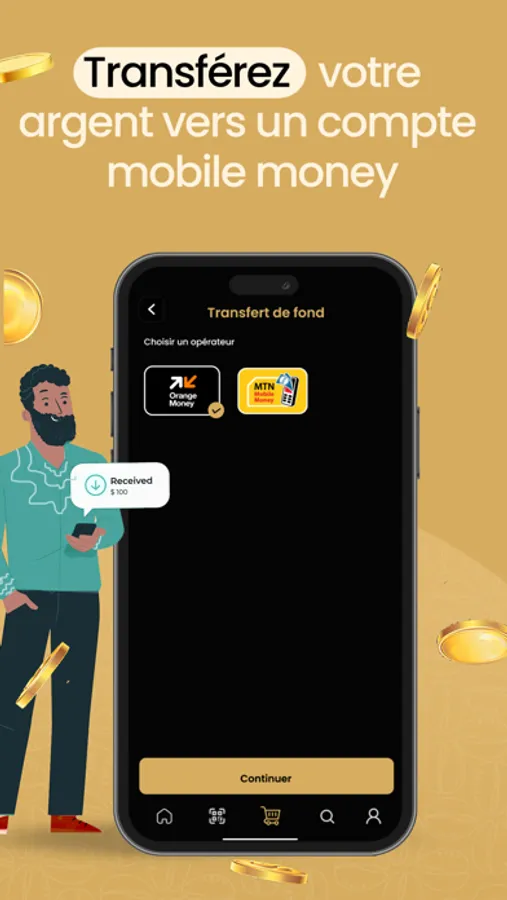 4. Retrait Facile: Retirez votre cashback via Orange Money ou MTN MoMo pour une utilisation pratique et sans souci.