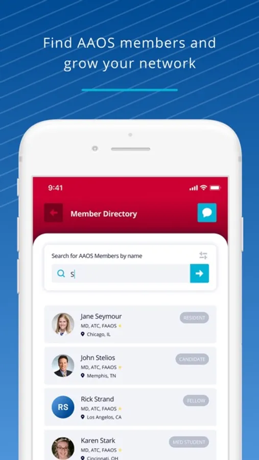 Boost your network with access to 38,000+ orthopaedic leaders from around the globe in the exclusive AAOS Member Directory. Our new member-to-member direct message feature helps you quickly connect and engage.