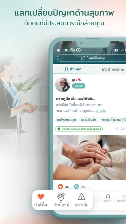 'Ya Jai ' is an online patient community platform for exchanging treatment experiences, and health concerns, and supporting patients with similar conditions through empathy. You will meet people who go through similar experiences and be able to discuss specific problems with them.