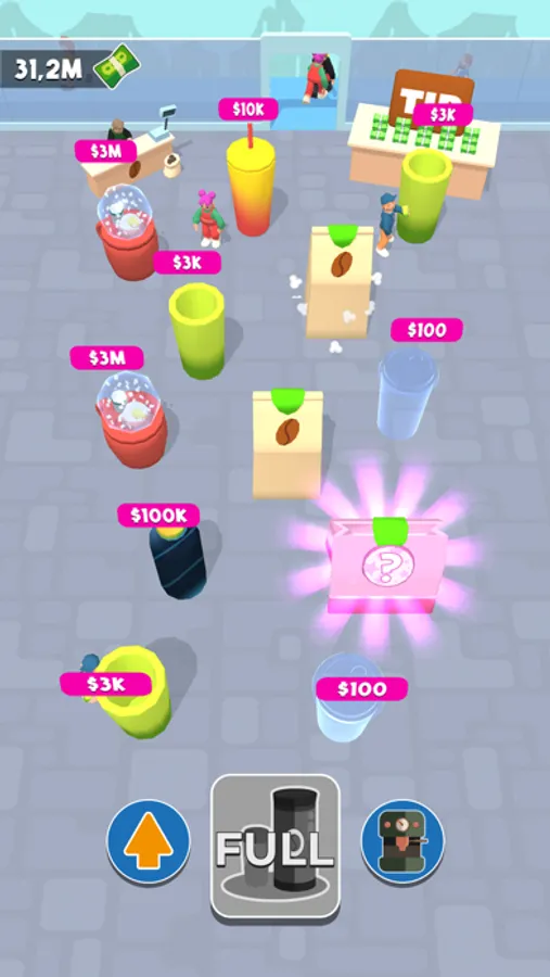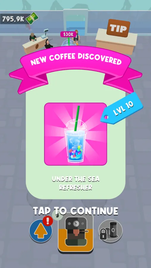 Improve your coffee shop and open different areas with the money you earn by selling to customers.