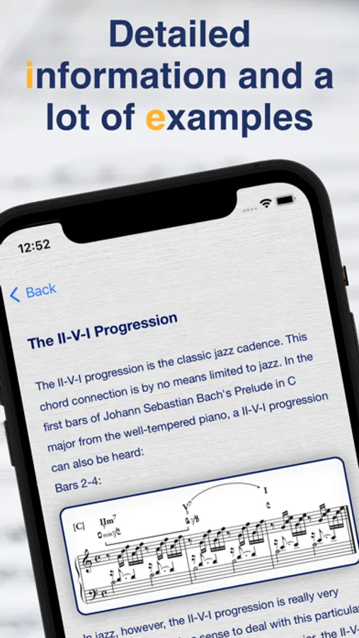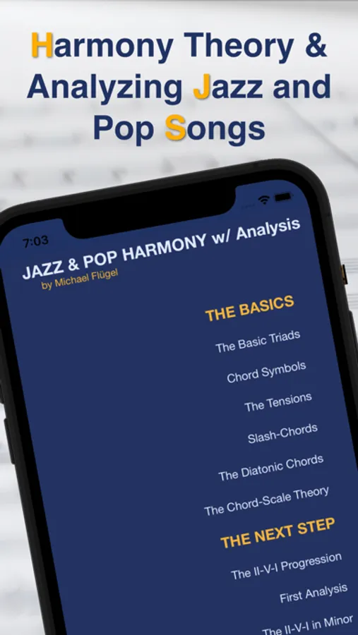 In the second half of the app, tunes and songs are analyzed harmonically. The way how to analyze is shown and explained in an understandable way.
