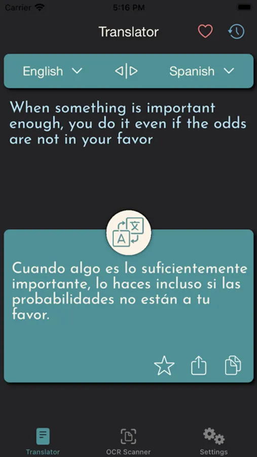 • Built-in OCR scanner allows instant translation using your phone camera or photo library.