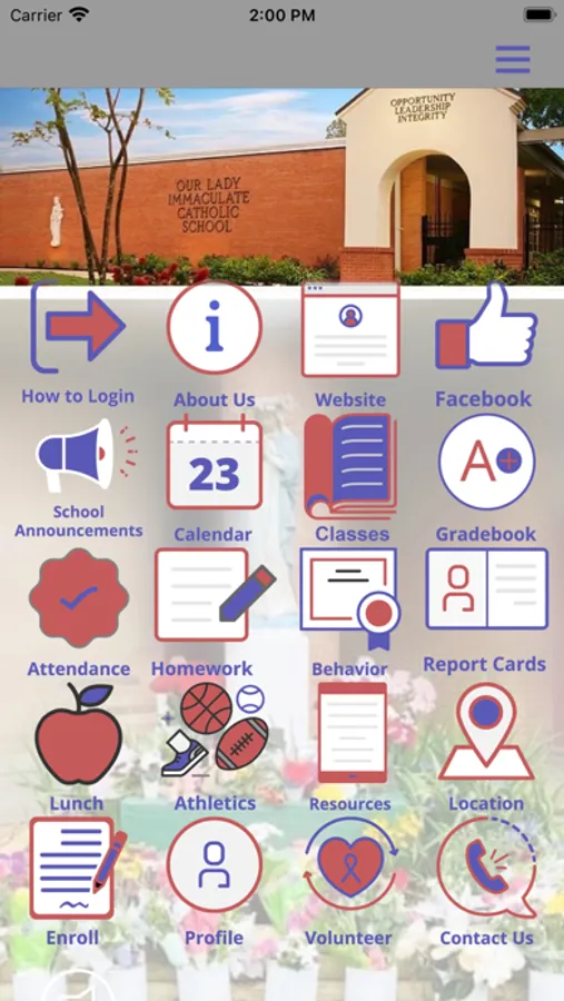 Welcome to the official app for Our Lady Immaculate Catholic School in Jennings, LA. This app is a one-stop-shop for our parents, students, and staff, with anytime, anywhere access to all the tools, content, and communications needed to stay connected and engaged. This app is our primary communication portal and provides easy access to Announcements, Calendar of Events, Policies and Procedures, Student Grades and Homework, Athletics, FACTS Financial and so much more!