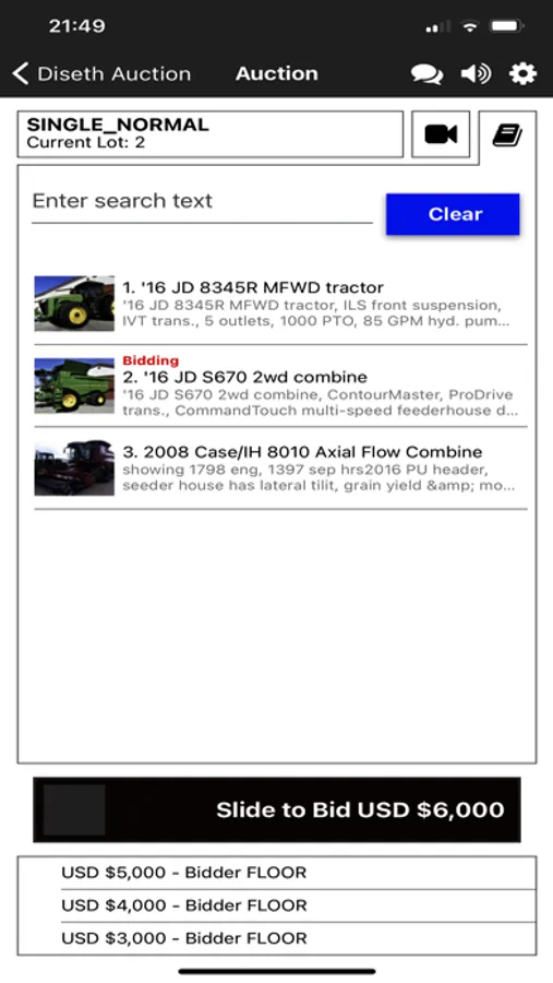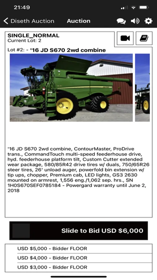 Presenting Diseth Auction Live! Use this app to bid live on your iPhone or iPad in our live auction events.