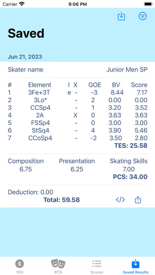 - The protocol mimics what the judge's score looks like in an actual competition. It contains information from element number, key, info, bonus, GOE, and score.