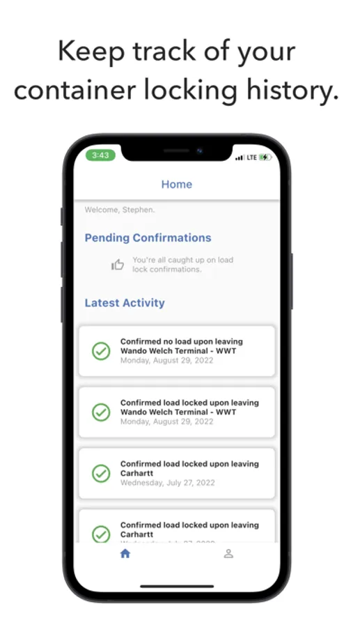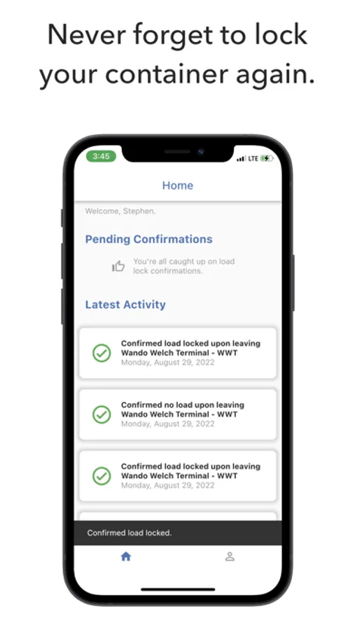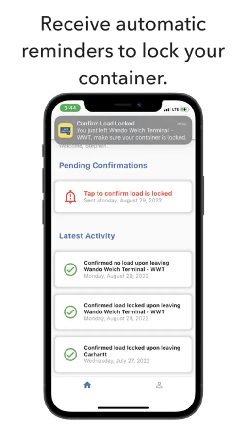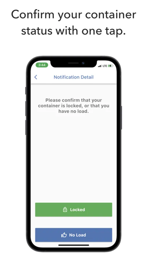 Never forget to lock your container again. Lock and Go is the easiest way to ensure you always lock your shipping container upon leaving a terminal. Simply sign up for the app, enable location and notifications, and you'll receive automated location-based reminders to confirm that your container is locked. If you don't respond in time, we'll let you dispatch know so that they can follow up to make sure your load is locked.